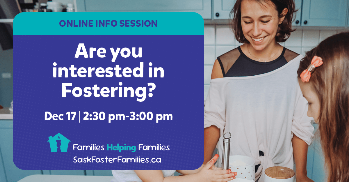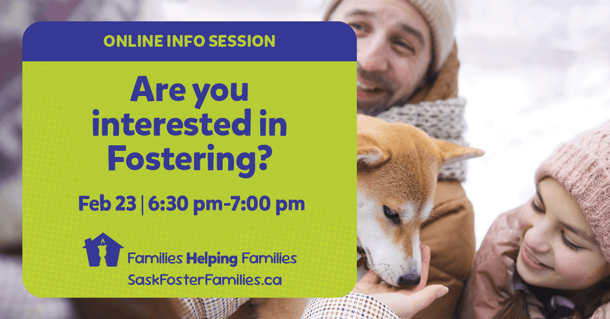 Are you interested in becoming a foster parent? Join us for an online information session from 6:30 PM - 7:00 PM.