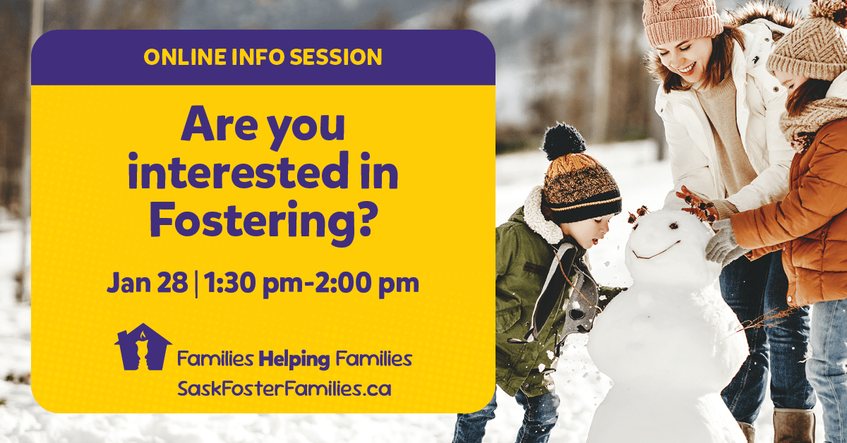 Are you interested in becoming a foster parent? Join us for an online information session from 1:30 PM - 2:00 PM.