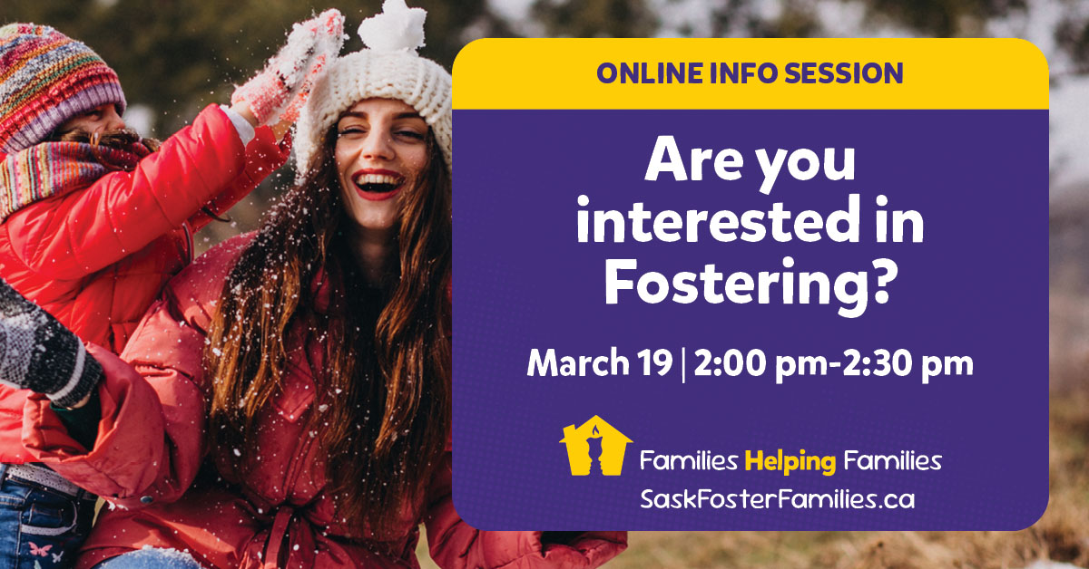 Are you interested in becoming a foster parent? Join us for an online information session from 2:00 PM - 2:30 PM.